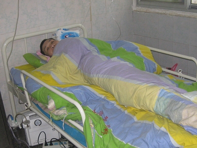 我是魏運沅,男,38歲,家住江西省上猶縣寺下鎮(zhèn)龍?zhí)洞迳险迕裥〗M,家有2人,一個5歲男孩,父親早年去世,妻子離異,母親在2013年12月31日突發(fā)心臟病在縣中醫(yī)院去世。在我辦理母親喪事的時候,因身體勞累家里又沒錢,加上我之前有癲癇病,2014年元月5日晚上住我堂哥家,次日凌晨2點左右起來小便,癲癇病又發(fā)作,從二樓摔下一樓,及時由寺下鎮(zhèn)衛(wèi)生院救護車送至上猶縣人民醫(yī)院,經CT檢查診斷為頸椎6、7節(jié)骨折,胸部以下癱瘓。當天上午10時送至贛州市人民醫(yī)院,CT確診為頸椎6、7節(jié)骨折,治療期間進行了兩次手術。因臥床時間長,肺部已被感染,出現呼吸困難,元月31日醫(yī)師經過病人家人同意被迫切開氣管進行吸痰,2月9日病情好轉轉回到上猶縣人民醫(yī)院繼續(xù)治療,現在已花費醫(yī)療費用15萬元以上,現胸部以下還是癱瘓,生活不能自理。按照2014年上猶縣新型農村合作醫(yī)療住院補償政策意外傷每人每年最高只準報6000元。余下14萬多元我自己難于承受,加之沒有固定工作,又有癲癇病,治療這些費用是親戚幫助借來的錢。小孩也沒人撫養(yǎng),已經面臨絕境。